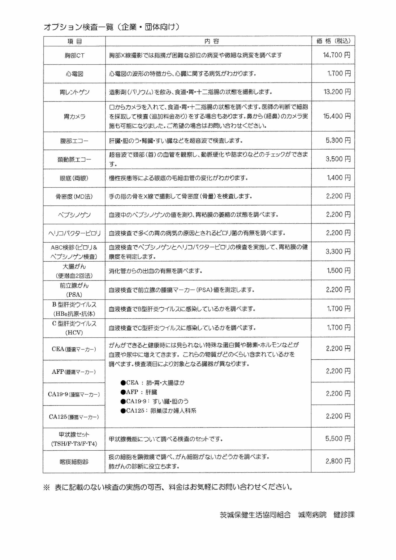 オプションの検査も組合員向けの料金設定となっており、健康づくりのために充実した内容の健康診断を割安に受診することができます。